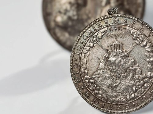 Dordrecht speelde in de zeventiende eeuw een cruciale rol in de religieuze en politieke geschiedenis van Nederland. Tijdens de Synode van Dordrecht (1618-1619) werd de koers van de Gereformeerde Kerk bepaald en werden afgevaardigden vereeuwigd op gedetailleerde penningen (kavels 503 en 504). Even indrukwekkend zijn de vier penningen (kavels 505 t/m 508) die herinneren aan de dramatische moord op de gebroeders De Witt in 1672 die diepe sporen naliet in de Republiek der Zeven Verenigde Nederlanden. Deze Dordtse penningen belichamen niet alleen belangrijke episodes uit de Nederlandse geschiedenis, maar ook de verfijning van de zeventiende-eeuwse penningkunst.